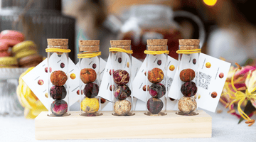 Deze bijzondere thee wordt gemaakt van gedroogde bloemen in bolvorm. Wanneer het hete water wordt toegevoegd, beginnen de bloemen te bloeien en geven ze hun smaak en geur af aan de thee. Dit proces levert niet alleen een heerlijke kop thee op, maar is ook een visueel erg mooi. Onze theebloemen zijn zonder toegevoegde smaakdruppels, het zijn puur de ingrediënten die de smaak afgeven en het visuele aspect bieden.